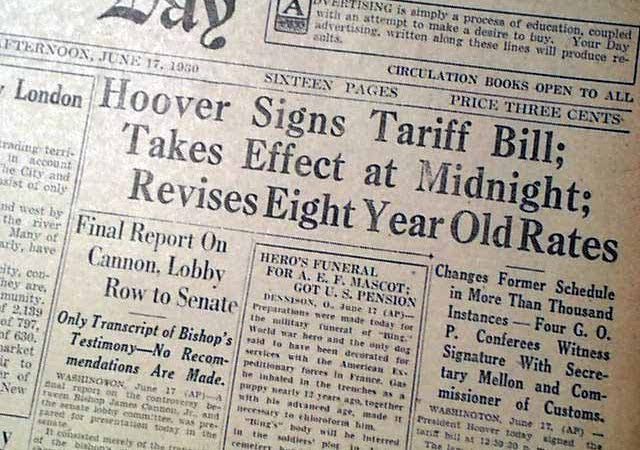 O primeiro grande exemplo moderno foi o Smoot-Hawley Tariff Act, sancionado pelo presidente Herbert Hoover em junho de 1930, em plena Grande Depressão.